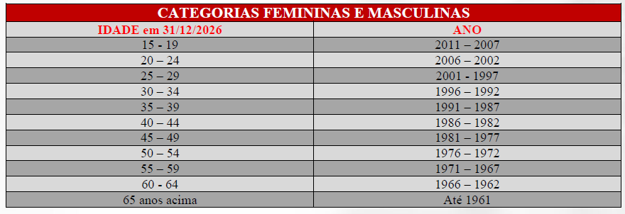 Categorias Night Run: